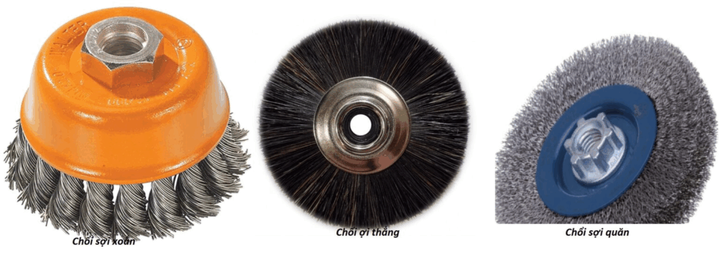 | Thép carbon (Steel wire) | Độ cứng cao, đàn hồi, mài mòn tốt nhưng dễ gỉ | Thép carbon, gang Làm sạch lớp sơn, rỉ sét nặng Tẩy bavia thô |