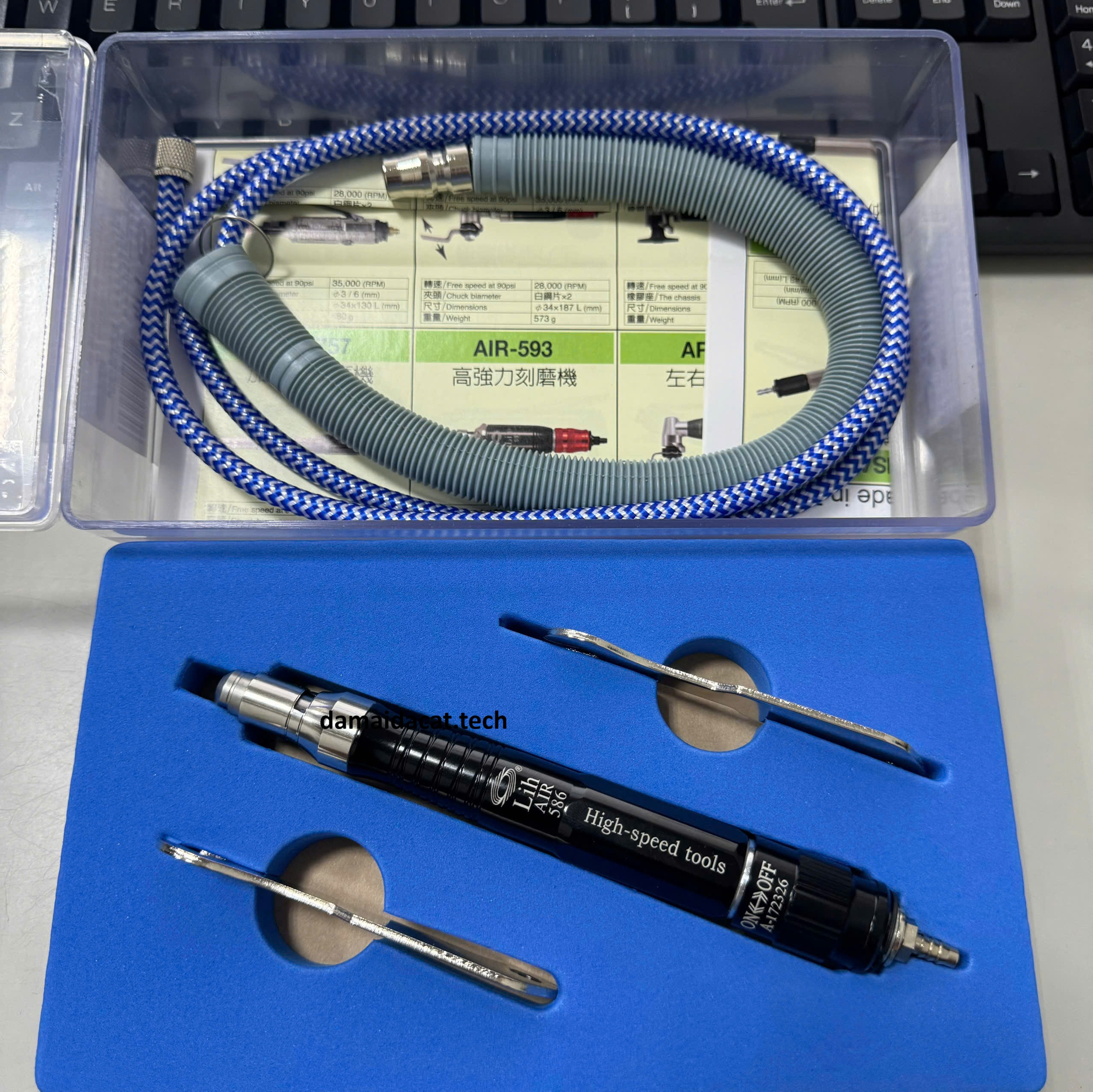 Máy mài khuôn khí nén AIR-586 LIH là dòng sản phẩm chạy bằng khí nén với đầu vào 1/4inch phù hợp với nhiều thiết bị. Đây là dòng máy mài có tốc độ cao thích hợp đánh bóng tinh và siêu tinh. Tốc độ tối đa máy có thể đạt được lên đến 65.000RPM.