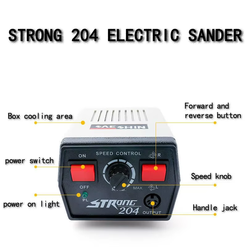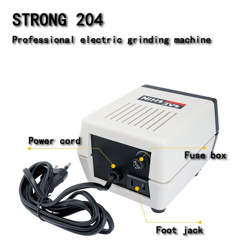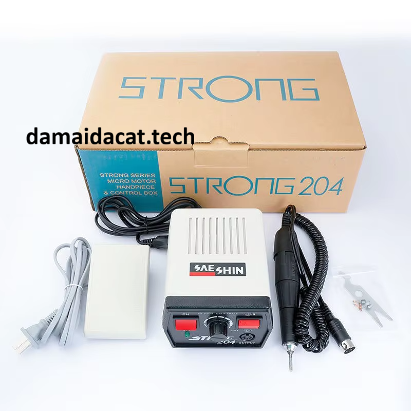Máy mài khuôn Strong 204 chạy điện là dòng máy sử dụng nguồn điện 220V. Tốc độ tối đa đạt được 50.000RPM với momen xoắn 0.5N.m. Do đó nó thích hợp các ứng dụng như đánh bóng tinh, mài tinh hoặc khắc chữ.