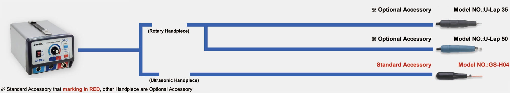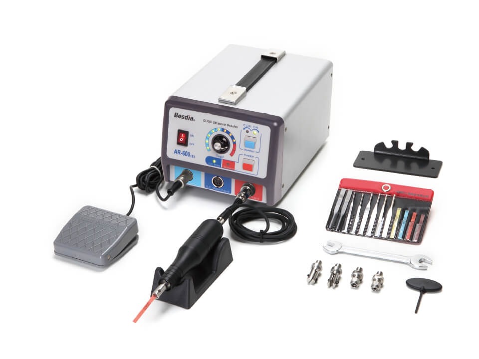 Máy mài khuôn và đánh bóng siêu âm AR-600 là dòng máy mài siêu âm đa chức năng. Thiết kế tối ưu giúp nó có thể lắp được cả 2 loại tay cầm là: tay cầm để mài sử dụng động cơ chổi than (Brush DC) và đánh bóng siêu âm.